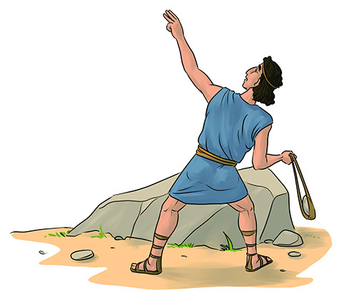 Hanem Dávid bízott Istenében. Megforgatta feje fölött a parittyáját, és már zúgott is a kő. Egyenesen Góliát homlokát találta el. Az óriás megingott, majd hatalmas teste a porba zuhant.