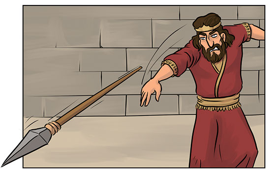 Habár Dávid királyaként tekintett Saulra, és ahol tudott, segítette, szolgálta őt, az uralkodó egyre gonoszabbul bánt vele. Féltékeny volt az ifjú sikereire és népszerűségére. Amikor Sault rossz gondolatok gyötörték, csak a zene tudta megnyugtatni. Dávid ment be ilyenkor hozzá, hogy lantszóval gyógyítsa. A dühöngő király két alkalommal is kis híján a falhoz szegezte Dávidot a lándzsájával.