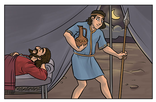 Egy másik alkalommal Dávid rajtaüthetett volna Saulon, aki ismét az üldözésére indult, de akkor sem bántotta, csak a lándzsáját és a vizeskorsót vitte el az alvó király mellől.