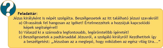 Jézust a kortársai leginkább csodás gyógyítónak, bölcs tanítónak vagy prófétának látták. A napkeleti bölcsek Jézust születésekor a zsidók királyaként tisztelték. Ezután csak egyetlen nap volt földi életében, amikor népe is királyként ünnepelte. Ennek a különös napnak, az első virágvasárnapnak a története sokat elmond arról, milyen király is Ő, milyen az Ő királysága.