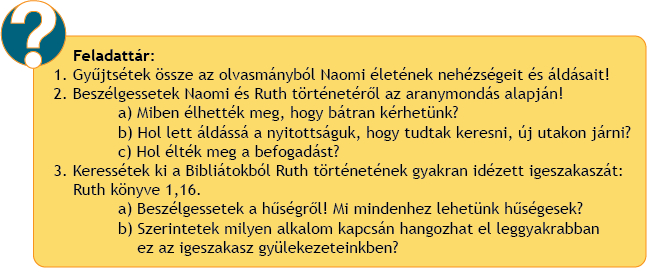 Naomi újra otthon érezhette magát szülőfalujában. Azt pedig nem is sejtitek, micsoda leszármazottjai lettek ennek a családnak! Utánanézhettek Máté evangéliumában, az első fejezet 5. versében.