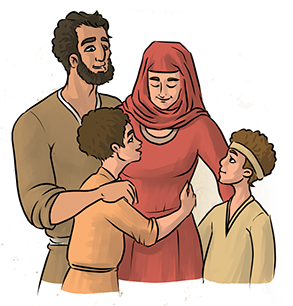 Egy idegen országban, Móáb földjén telepedtek le. Az ott töltött idő alatt megszokták, sőt megszerették új lakóhelyüket. Az apa meghalt, de a fiúk felnövekedve választottak egy-egy Móábi lányt, Orpát és Ruthot, így alapítottak új családot.