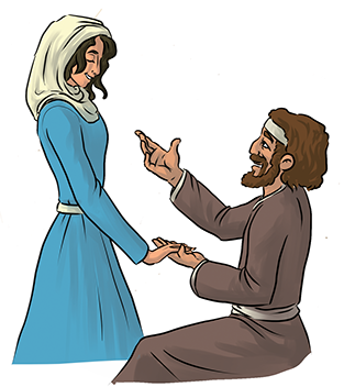 Így történt, hogy Naomi Ruthtal költözött vissza Betlehembe. Bizony, keserű hazaérkezés volt ez! Férjével és két fiával ment el, most özvegyként, egy idegen leánnyal az oldalán tért vissza. De az Úr nem hagyta őt gondoskodás nélkül! Ruth nemcsak hűséges, de kedves és szorgalmas teremtés is volt. Egyik nap, amint az aratók után a lehullott kalászt szedegette, hogy legyen mit enniük, megismerkedett Bóázzal, a föld gazdájával. Bóáz hamar megkedvelte a jólelkű lány, és amikor kiderült, hogy anyósával, Naomival közeli rokonok, nagyon megörült. Hamarosan Bóáz és Ruth összeházasodtak, és új családot alapítottak Betlehemben. Gyermekük is született, Óbéd.