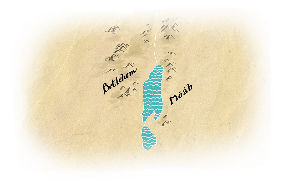 Naomi szerencsés asszonynak mondhatta magát: hűséges férje volt, Elímelek, és két szép fiúval is megáldotta őt az Úr. A boldog évek után azonban szűk esztendők következtek. Éhínség tört ki az országban, és a családnak el kellett költöznie Betlehemből.