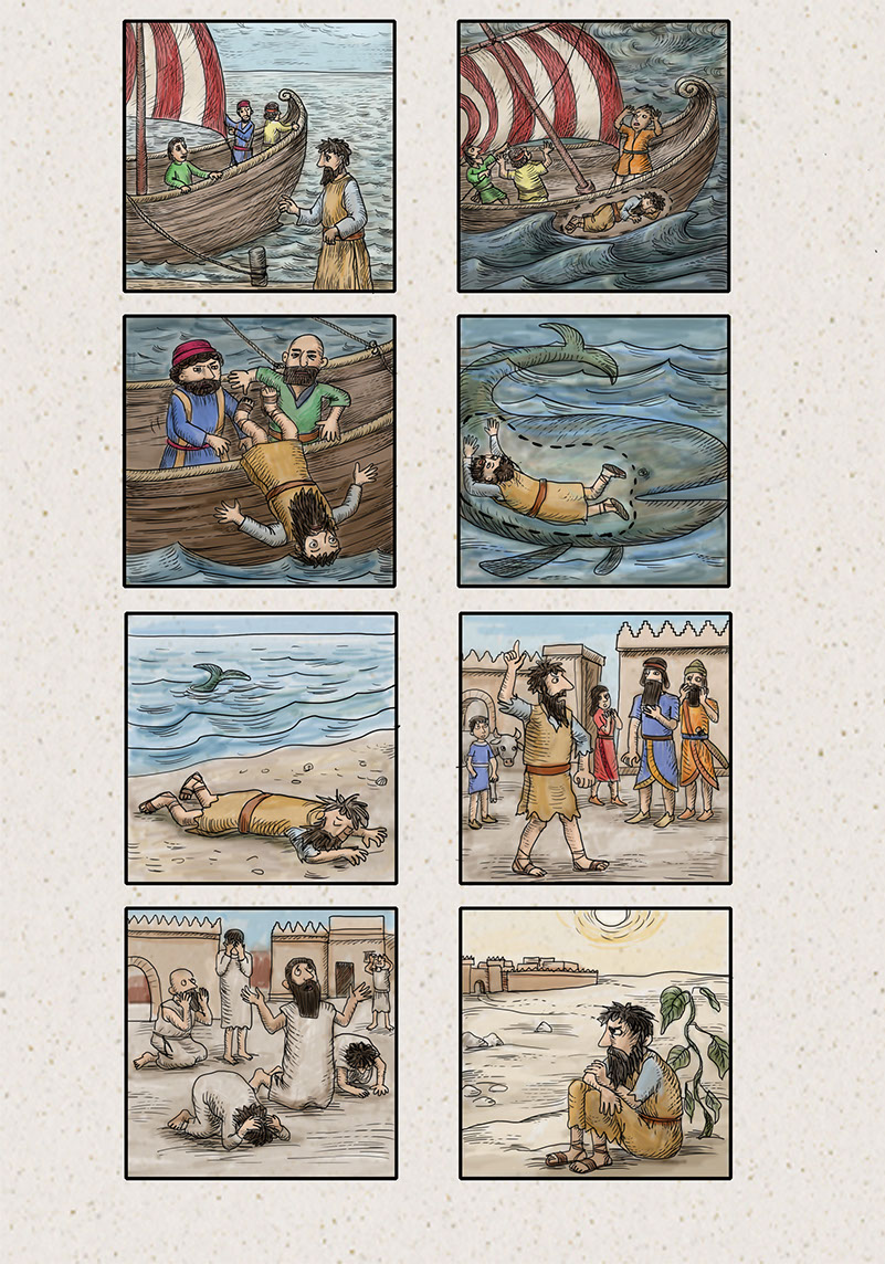 – Ó, Uram! Gondoltam én ezt márakkor, amikor még otthon voltam! Azért akartam először Tarsísba menekülni, mert tudtam, hogy te kegyelmes és irgalmas Isten vagy, türelmed hosszú, a szereteted nagy, és visszavonhatod még a veszedelmet.