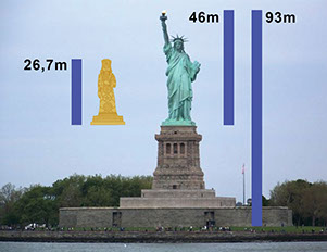 A Nebukadneccar által építtetett bálványszobor kb. 26,7 méter magas volt és tiszta aranyból készült. A hatalmas szobor fele olyan magas volt, mint ma