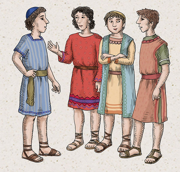 A babiloni fogságban nem voltak az elhurcoltak börtönben. A babiloniak elismerték a hasznos embereket. Éppen ezért több zsidó férfi fontos tisztséget töltött be Nebukadneccar király udvarában. Az elhurcolt, legtehetségesebb előkelő fiatalokat megtanították minden fontos tudományra, a babiloni nyelvre, és a király szolgálatába állították őket. Közéjük tartozott Dániel is, és három barátja: Sadrak, Mésak és Abéd-Negó is. Ők nemcsak a tudásukkal, hanem a hitükkel is kitűntek a többiek közül. Az idegen földön is Istenben bíztak és nem foglalkoztak a bálványokkal. Dániel volt köztük a legbölcsebb, akit még egy különleges képességgel is megajándékozott Isten: meg tudta magyarázni, hogy mit jelentenek az álmok.