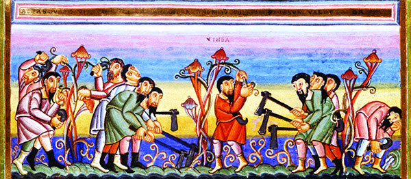 A fenti rajzok az Echternachi Aureus Kódexből származnak.