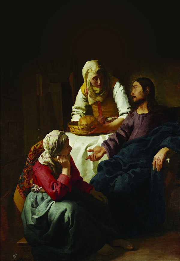 „Amikor továbbhaladtak, betért egy faluba, ahol egy Márta nevű asszony a házába fogadta. Volt ennek egy Mária nevű testvére, aki leült az Úr lábához, és hallgatta beszédét. Mártát pedig teljesen lefoglalta a sok munka. Ezért odajött, és így szólt: Uram, nem törődsz azzal, hogy a testvérem magamra hagyott a munkában? Mondd hát neki, hogy segítsen!